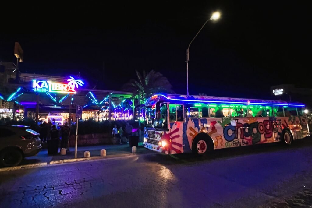 Experience Aruba’s best night out aboard The Chogogo Party Bus — a 4‑hour Sunset Party Tour that transforms an ordinary evening into a celebration. Start with a champagne toast on the beach as the sky ignites, then let our live DJ set the tone while we cruise Aruba’s hottest spots from Downtown Oranjestad to lively Palm Beach, with a stop at Komedo and a final drop at the open‑air Kalibra Bar. Sip signature cocktails and enjoy unlimited drinks on board, sing along to karaoke, and dance under the stars with a friendly, inclusive crowd. With hassle‑free pick‑up (scheduled between 5:00–6:00 PM), attentive staff, small‑group vibes (limited to 36 guests), and picture‑perfect sunset moments, it’s the easiest way to relax, mingle, and create unforgettable memories—perfect for groups, couples, or solo adventurers. Reserve your seat now and let The Chogogo Party Bus deliver Aruba’s ultimate night out.